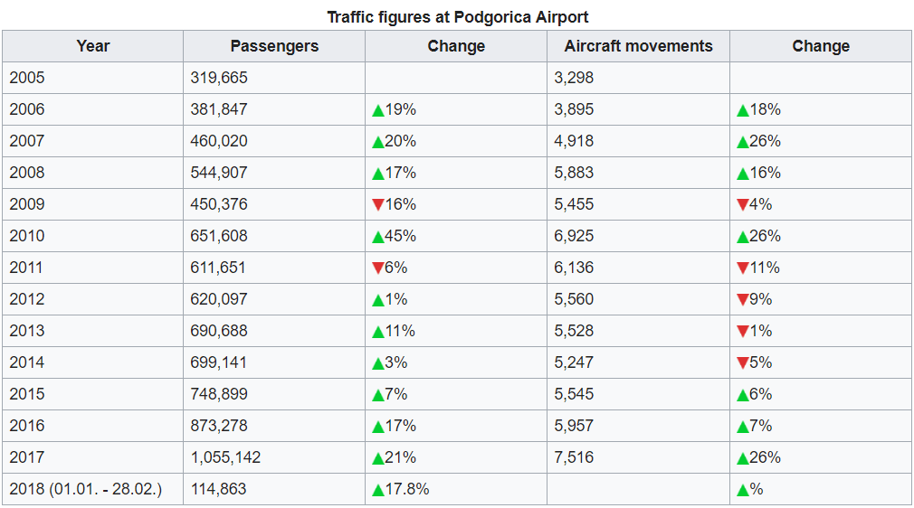 As tourism grows in Montenegro, so of course do the passenger numbers at the two key airports of Podgorica and Tivat. Just how much things have changed in recent years is reflected in the numbers over the last 15 years or so.